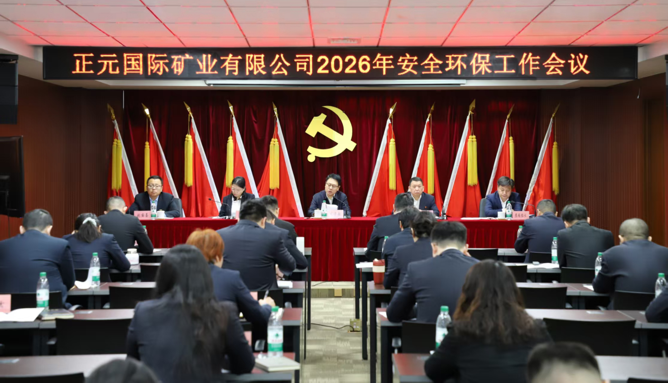 刘国喜作题为《牢守零事故底线 抓实精举措硬功 奋力开创安全环保与高质量发展协同并举新局面》的工作报告,全面回顾2025年公司安全环保工作,深入分析存在的问题和不足,明确2026年度安全环保工作的总体思路、目标任务与重点工作。报告强调要贯彻落实习近平总书记关于安全生产工作的重要论述精神,以党的二十届四中全会“统筹发展和安全”的重大原则为遵循,紧扣“十五五”矿山安全治理现代化目标,牢固树立安全发展、绿色发展理念,坚守底线红线,推进系统性、根源性问题整改提升,全面压实各层级安全环保责任,大力推进科技创新与技术改造提升本质安全水平,主动对接融入国冶黄金战略构建现代安全环保治理体系,坚决打赢安全生产治本攻坚三年行动收官战,为公司高质量发展和战略转型提供坚实稳固的保障。
